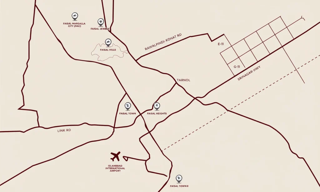 Faisal Tower, Faisal Town Main Fateh Jang Road N-80 near Tarnol Interchange Motorway M-1, Rawalpindi Pakistan.